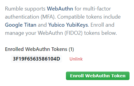 User profiles can be configured to require FIDO2 WebAuthn compatible security tokens, such as the Yubico YubiKey and Google Titan devices.