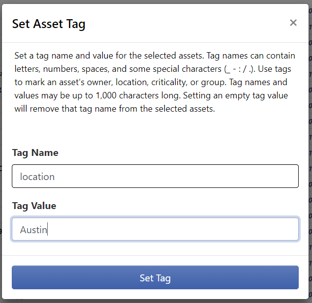 The Inventory now supports setting, clearing, and searching based on Tags. Tags are key-value pairs that can signify organization structure or process. Good uses of Tags include setting the location of an asset, indicating the asset owner, or noting that an asset is part of a critical business process.